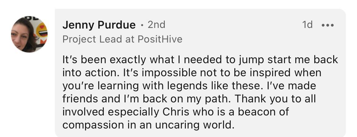 Cohort learning & peer support: group practice, accountability and a local network you can lean on. High leverage.